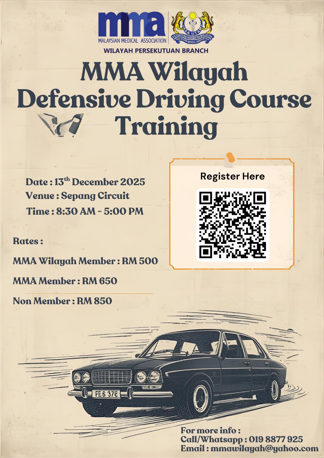MMA Wilayah will be organising Defensive Driving Course 2.0 on 13th December 2025 at Sepang Circuit.