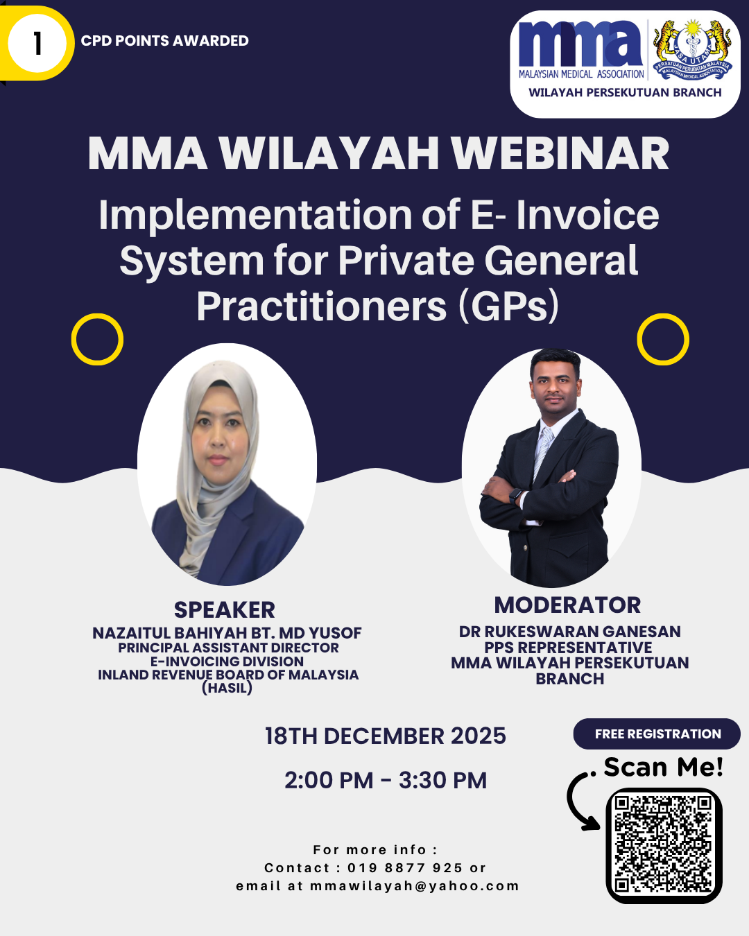 Topic: MMA Wilayah Webinar: Implementation of E-Invoice System for Private General Practitioners (GPs)