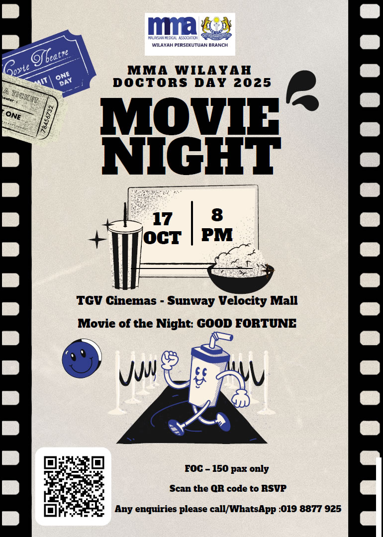 In celebration of Doctors Day 2025, MMA Wilayah Persekutuan is delighted to invite you to a special Movie Night – our way of appreciating and celebrating our doctors!