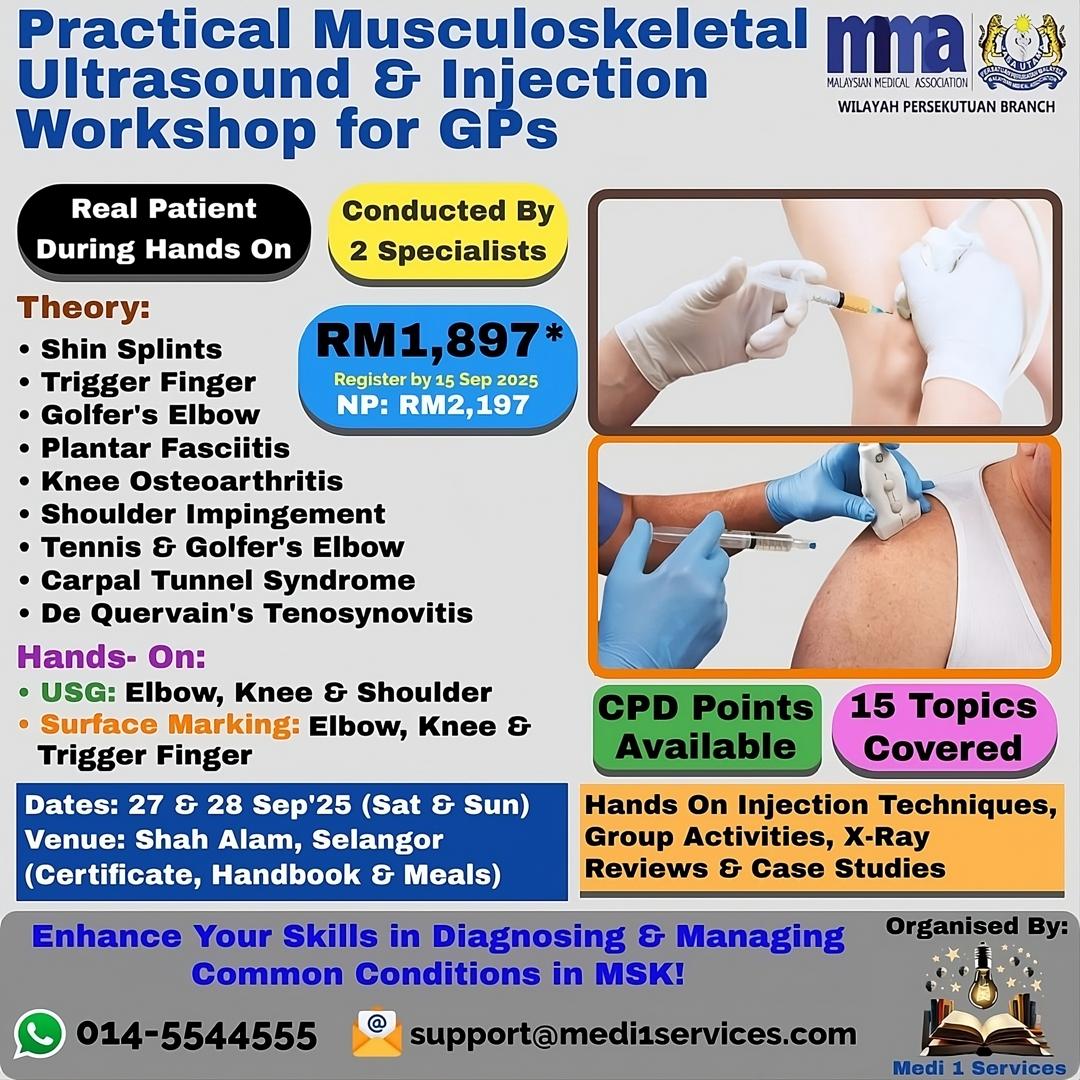 MMA Wilayah Persekutuan Branch is pleased to share an upcoming workshop organised by Medi 1 Services:
