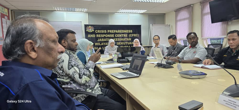 On 22 May 2025, the Federal Territories Health Department (JKWPKL&P) convened an interagency meeting on the prevention and control of Hand, Foot and Mouth Disease (HFMD), bringing together key stakeholders at the Crisis Preparedness and Response Centre (CPRC), Kuala Lumpur. Among the active participants was the Malaysian Medical Association Wilayah Persekutuan (MMAWP), reinforcing its ongoing commitment to public health partnerships and community disease prevention. MMAWP was represented by Dr Selvarajah a/l Sathaya, Chairman of MMA WP and Dr Manohar Bendiah (PPS Representative).